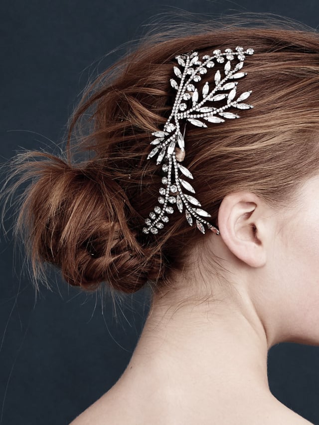 JENNIFER BEHRの人気のヘッドコームのLAUREL。リーフモチーフのヘッドドレスはナチュラルなウェディングに!繊細なデザインはオシャレ花嫁に人気です。アップヘアにも、ダウンへアにも。バックに、サイドに着け方次第でご自由にアレンジが可能です。