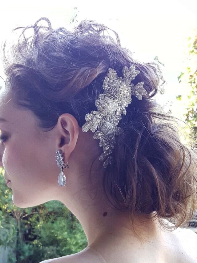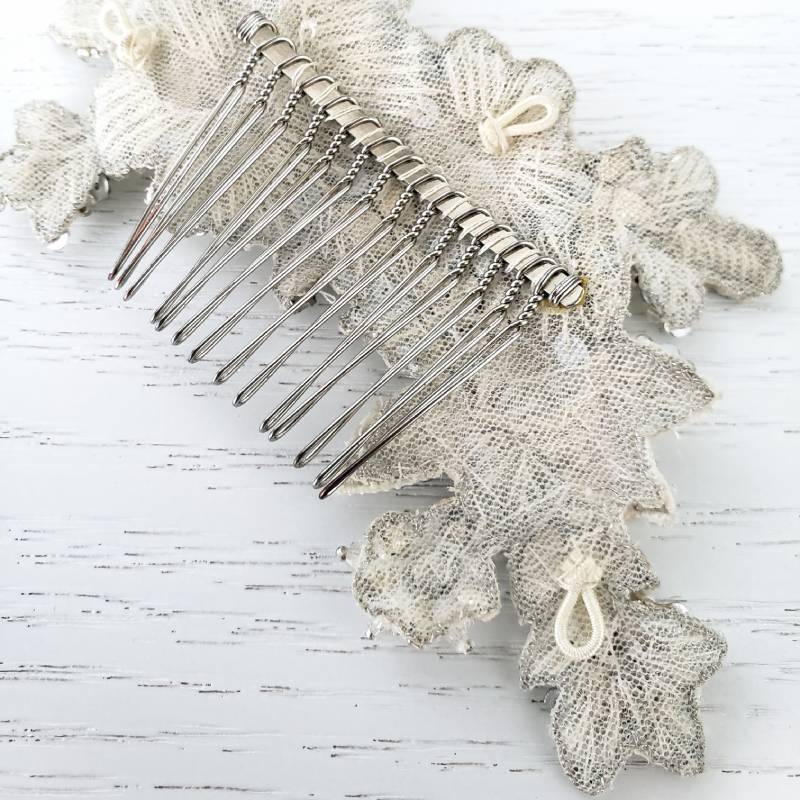 a.b.Ellie(エイビーエリー)のシルバービーズ、パール、クリスタルが美しい、ウェディングヘッドコーム。バックに、サイドに着け方次第でご自由にアレンジが可能!