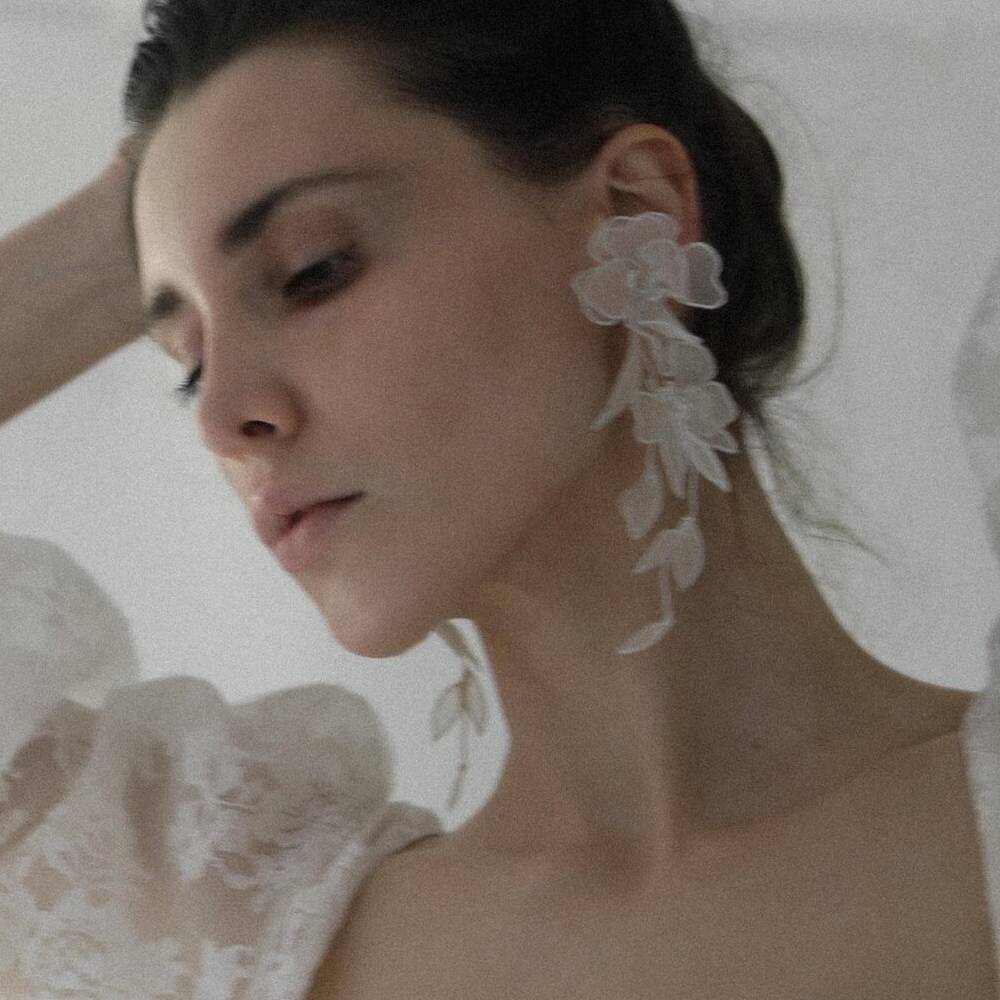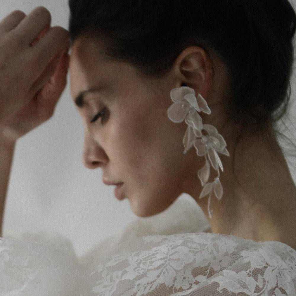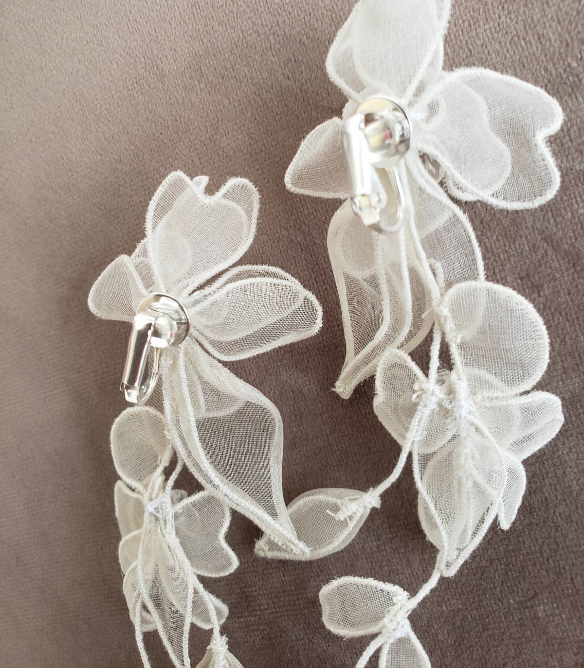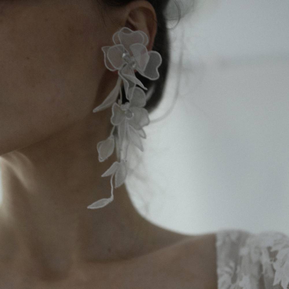 シルクオーガンザのフラワーペタルがひらひらと愛らしいイヤリングCharlee Floral Tier