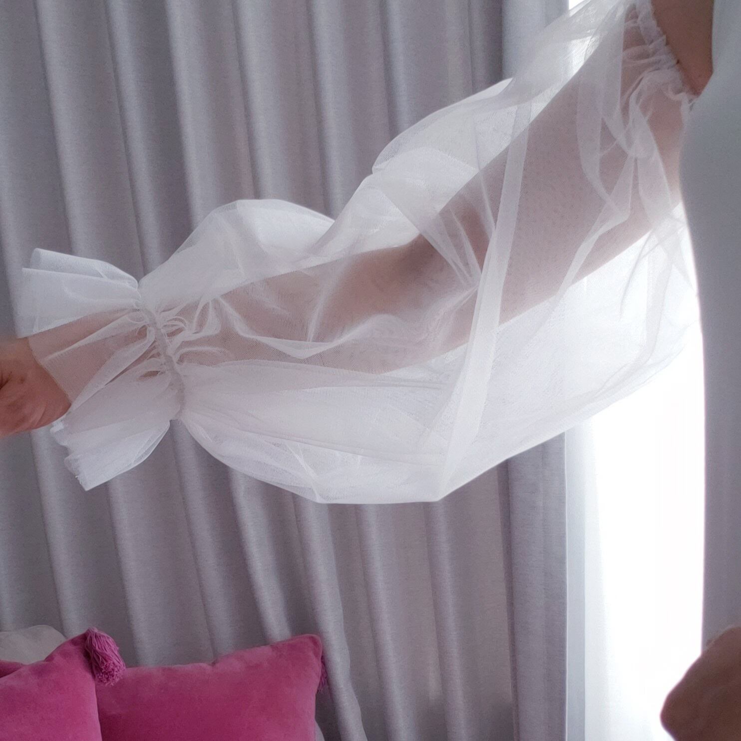 パフスリーブのつけ袖(長袖タイプ)。両サイドはゴムなのでお好きな長さやふんわり感にアレンジできます。