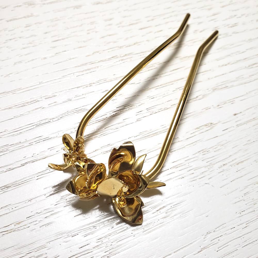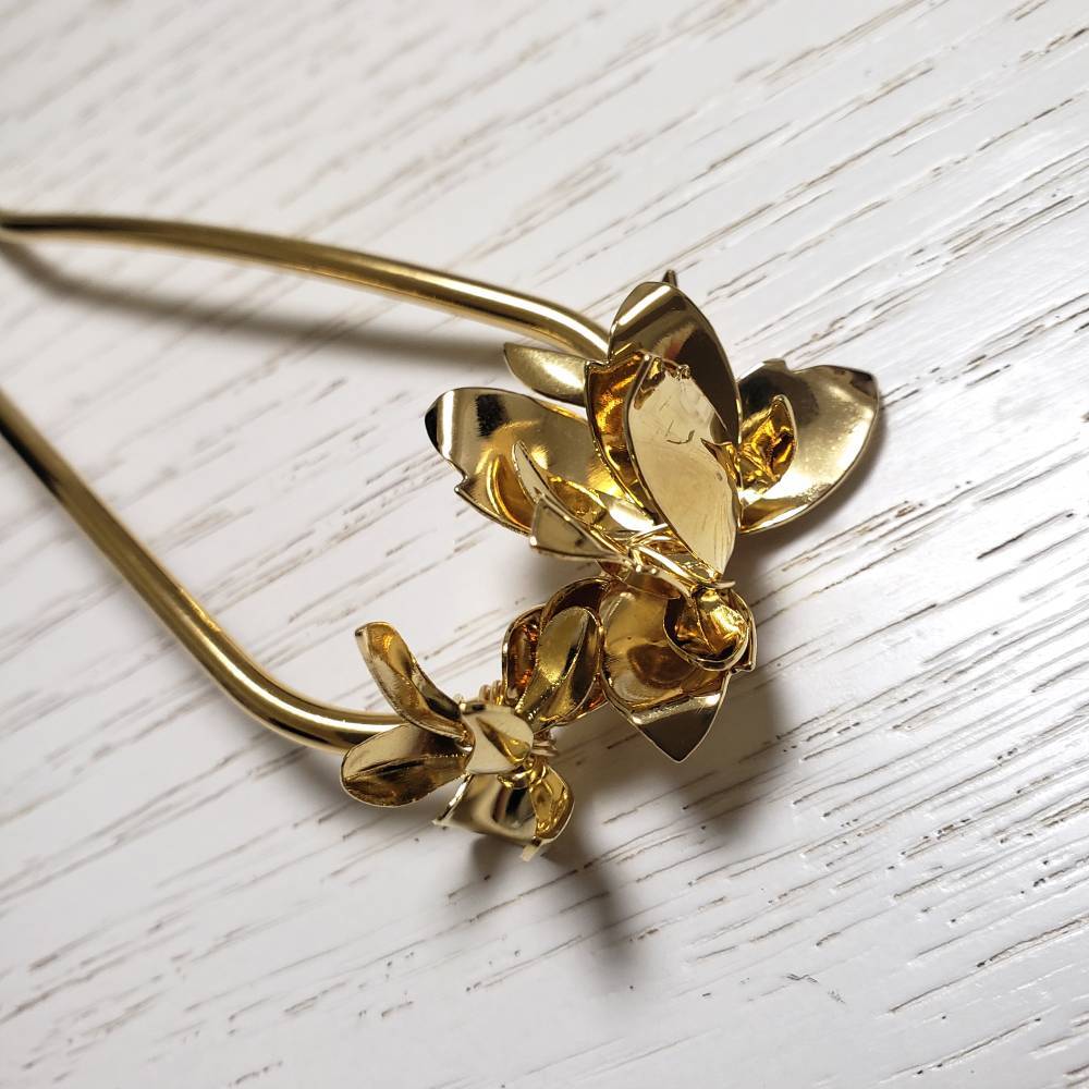 a.b.Ellie Magnolia U Hairpin。ゴールドのヘアスティック(Uヘアピン)は、イヤリングのマグノリアとセットでコーディネートもさりげなくて素敵。