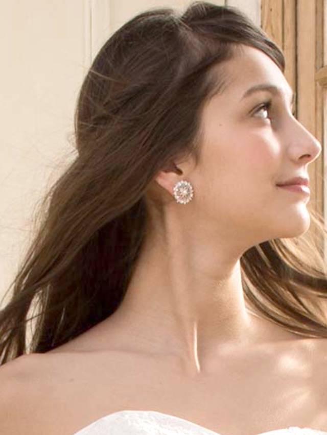 人気のElizabethBower エリザベスバウアーのLace Pearl Crystal ピアス。レーススワロフスキーのヘッドドレスとペアのイヤリング(ピアス)です。輝きとパールが上品でエレガントなビジューイヤリング。ちらの商品はピアスです。