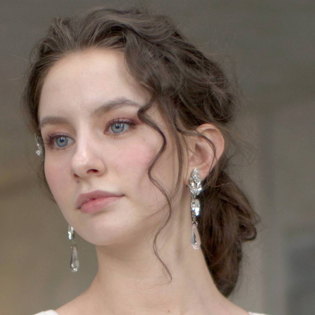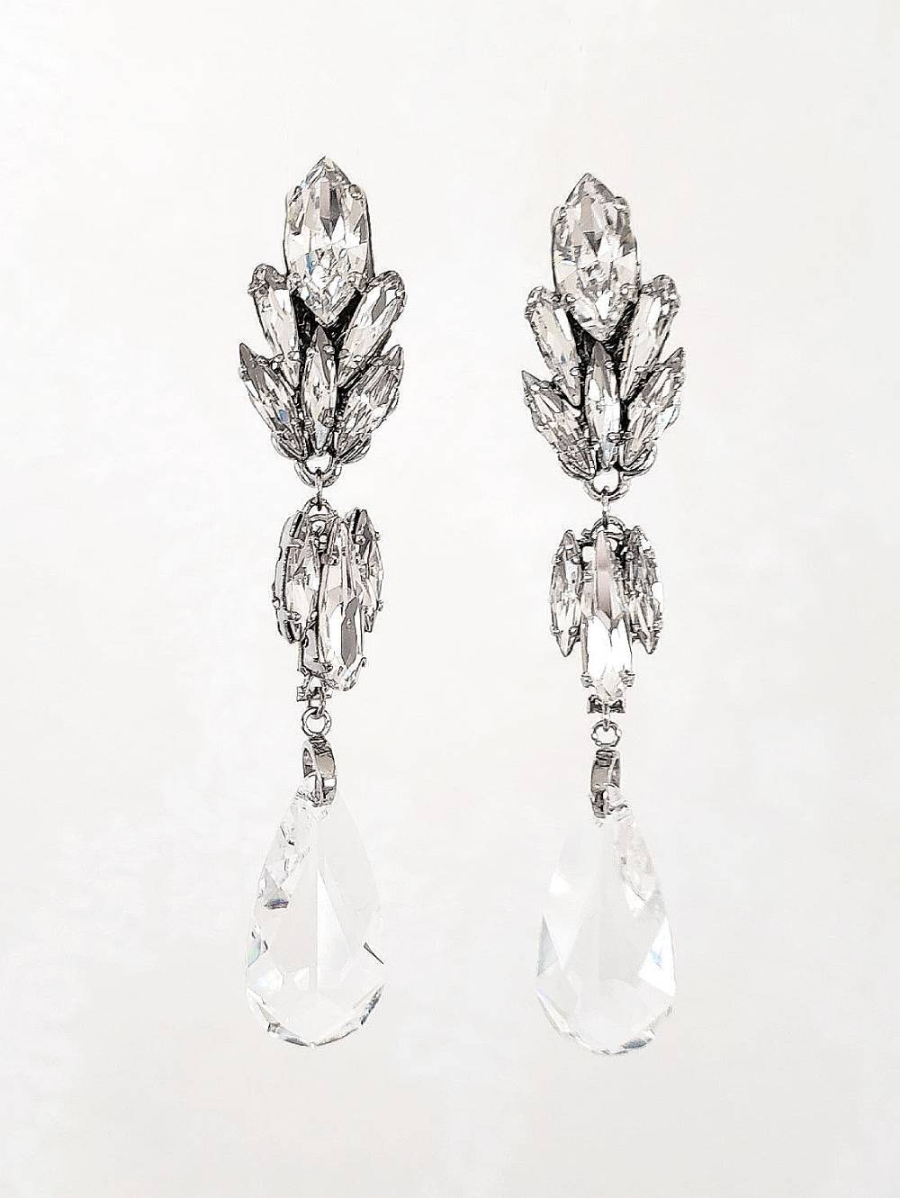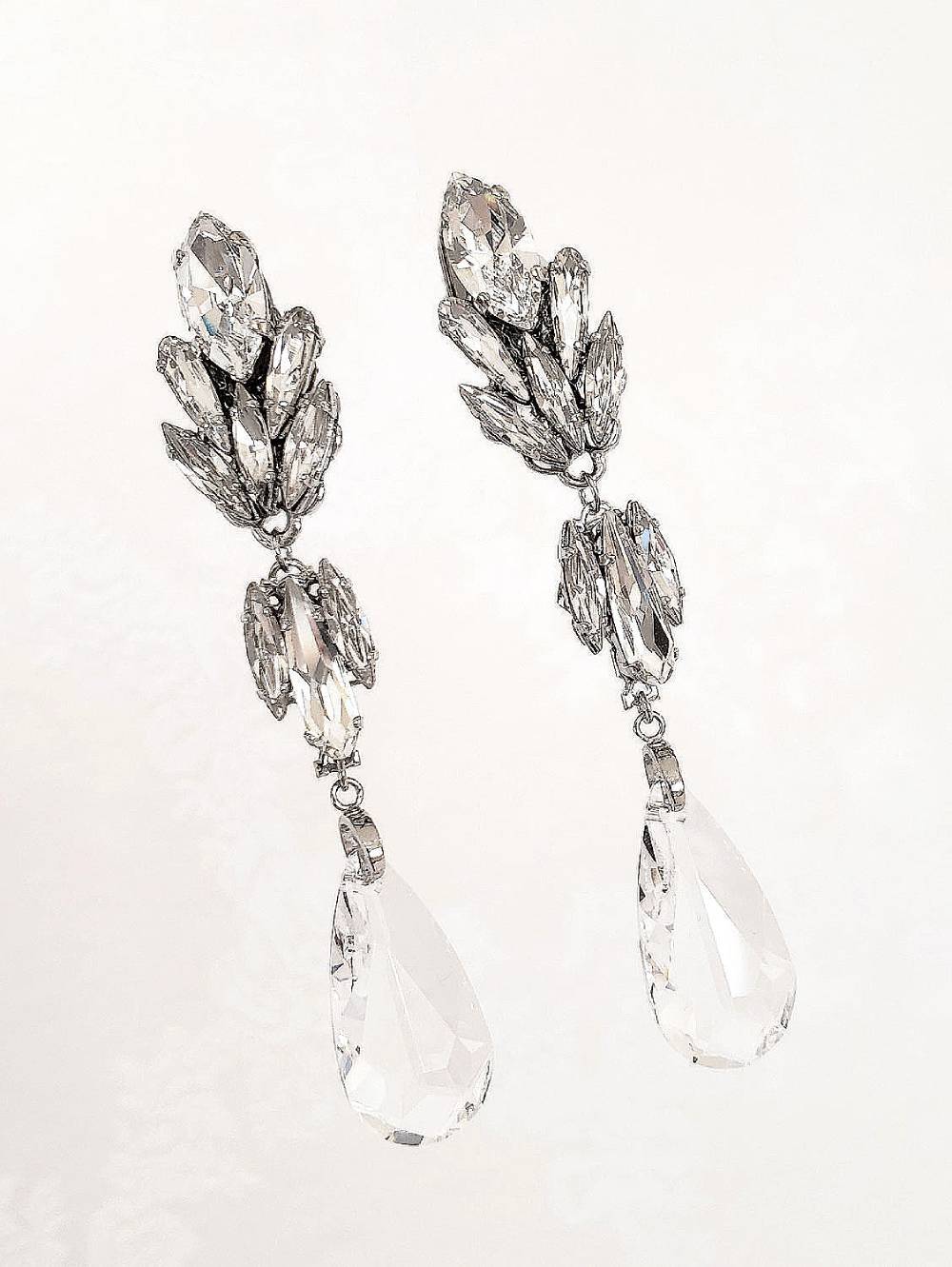 花嫁に人気のクリスタルのビジューイヤリング。クリアな輝きはスタイリッシュで素敵なウェディングを演出してくれます。