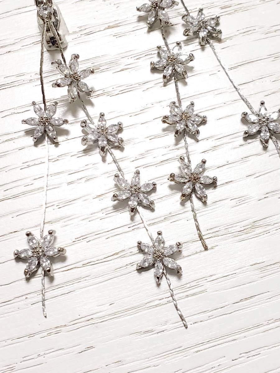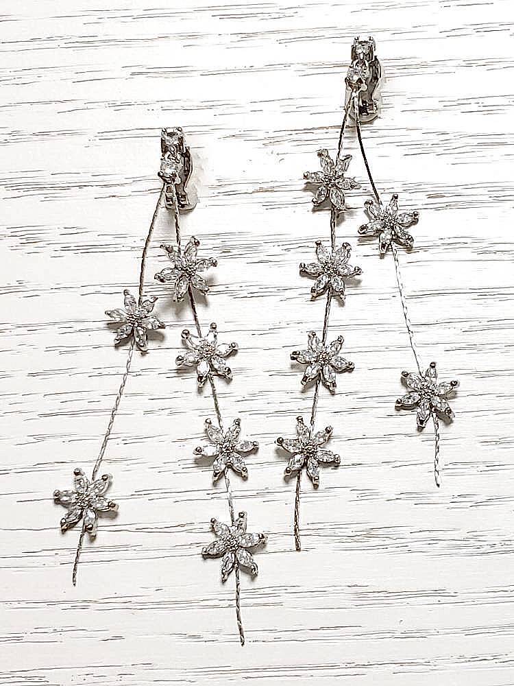 ジルコニアストーンブライダルイヤリング。星がキラキラと動きのあるロングイヤリング。透明感のあるジルコニアは女性らしい印象に。スレンダードレスにもおすすめ!